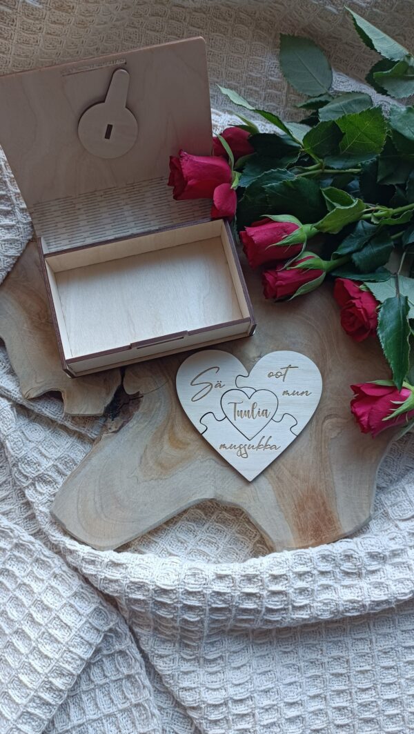 Halumalla saa rasian sydämenpalapelin kanssa, johon kaiverretaan halumalasi nimi.
