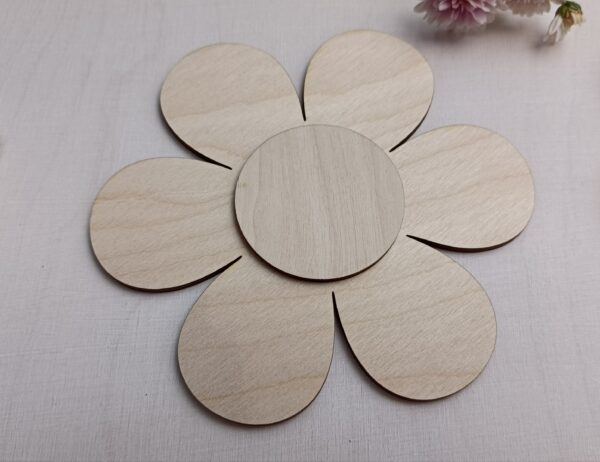 Puinen askartelukukka askarteluun ja koristeluun. Askarteluun käyttää niitä tarvikkeita, joista itse pidät, esim. lankaa tai maalia.